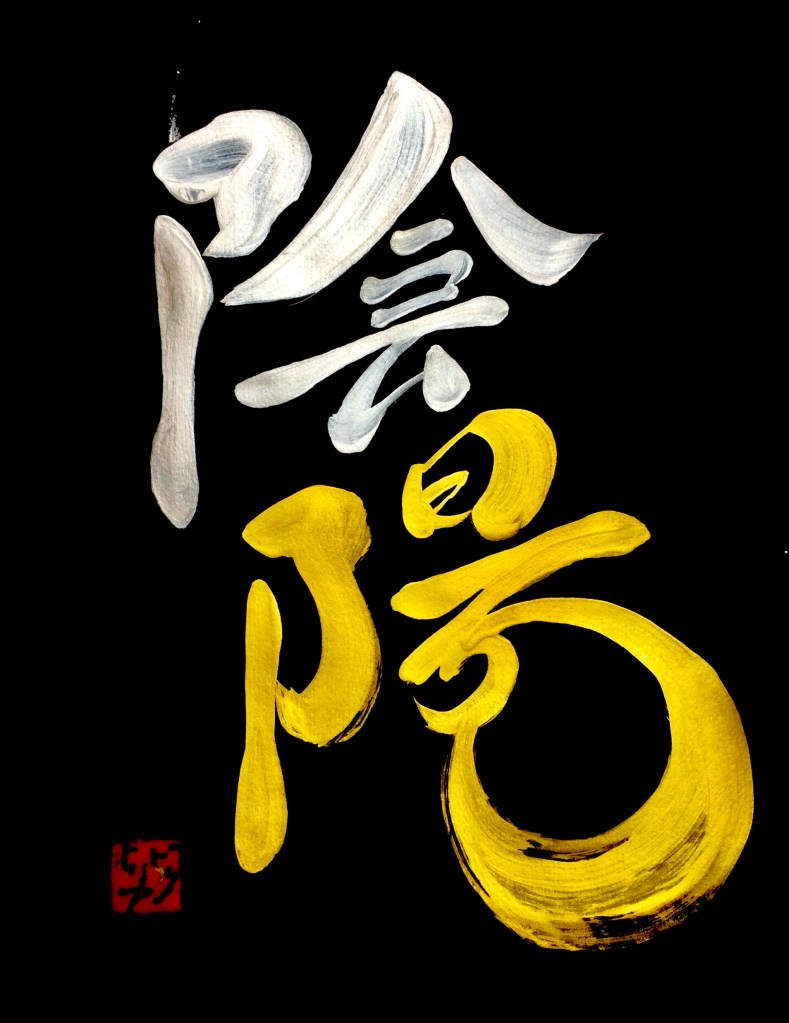 Yin-Yang is also an important concept in Japanese art. In the calligraphy above, outward brush-strokes are Yang and should be painted freely. Inward brush-strokes are Yin, and should be painted tightly.