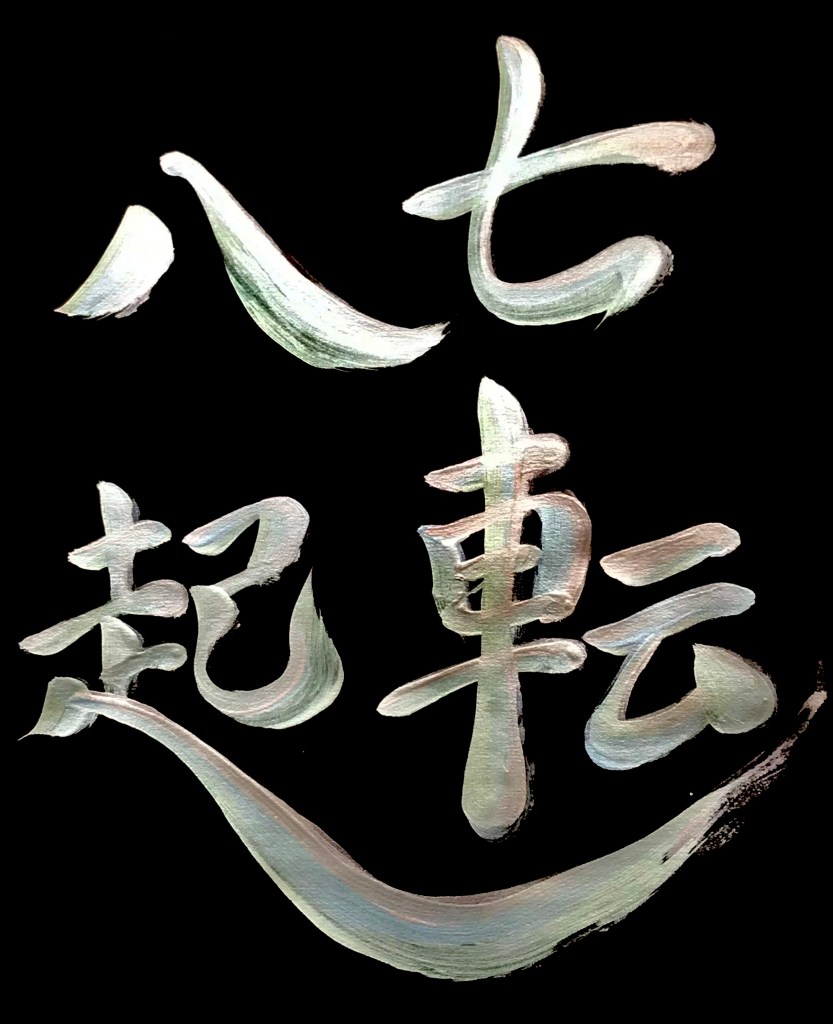 七転八起 (shichi-ten-hakki) “fall over 7 times, get up 8 times” Posted byVickyJune 4, 2022June 4, 2022Posted inUncategorizedTags:asian art, Calligraphy, idioms, Japanese art, Japanese calligraphy, japanese culture, Japanese idioms, 書道, 書道アート 七 = seven 転 = fall over 八 = eight 起 = get up One of my favourite Japanese 4-character idioms Share this: Click to share on X (Opens in new window) X Click to share on Facebook (Opens in new window) Facebook Like Loading... Related