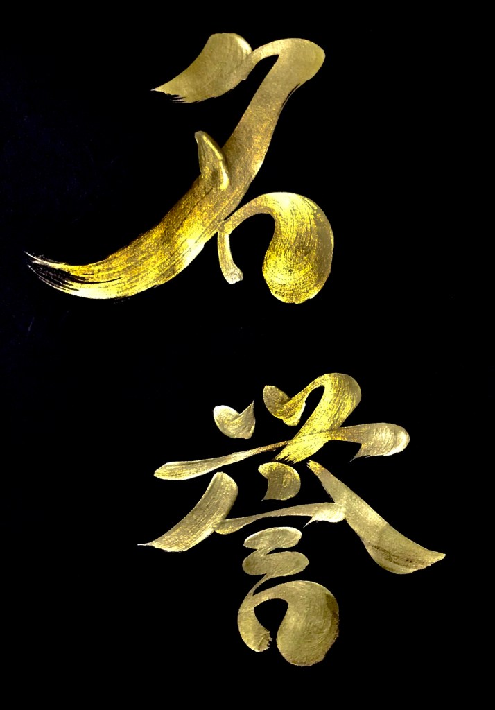名誉 (mei-yo) “honour” Posted byVickyJune 14, 2022Posted inUncategorizedTags:Calligraphy, Japanese calligraphy, japanese culture, 書道アート One of the 7 virtues of bushido, the samurai code of chivalry. Share this: Click to share on X (Opens in new window) X Click to share on Facebook (Opens in new window) Facebook Like Loading... Related