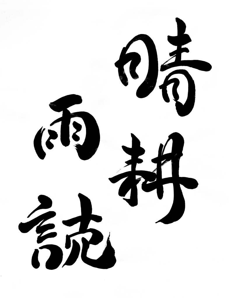 This is a “yo-ji-juku-go” (Japanese 4-character idiom), which describes how to live a peaceful yet productive life: work when it’s sunny, and rest when it rains. Doing everything in its proper season.