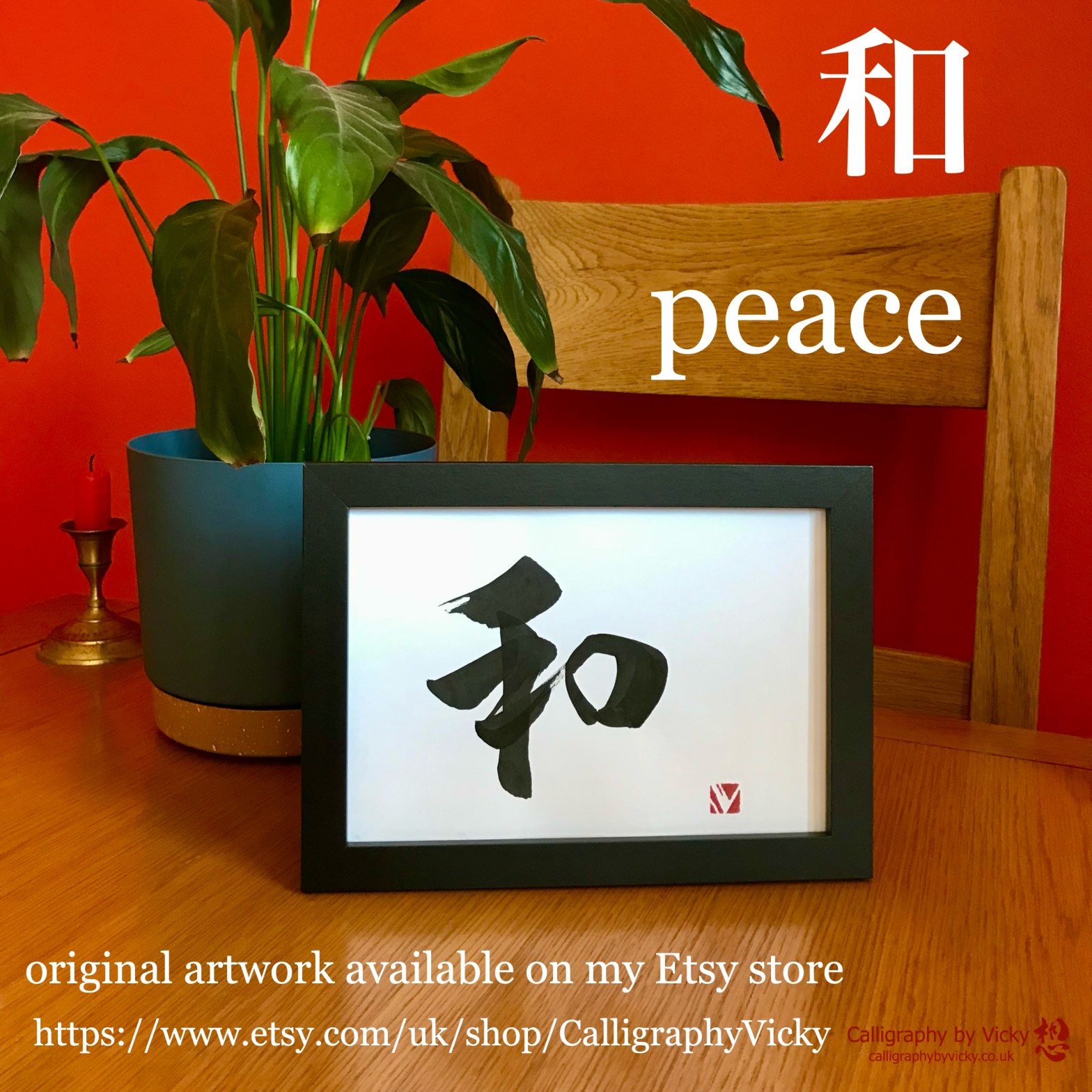 和 (wa) peace Posted byVickyJuly 25, 2024July 25, 2024Posted inUncategorizedTags:Calligraphy, Japan, Japanese calligraphy, japanese culture, Japanese words, 書道, 書道アート Original shodo (Japanese calligraphy) artwork available here on my Etsy store Share this: Click to share on X (Opens in new window) X Click to share on Facebook (Opens in new window) Facebook Like Loading... Related