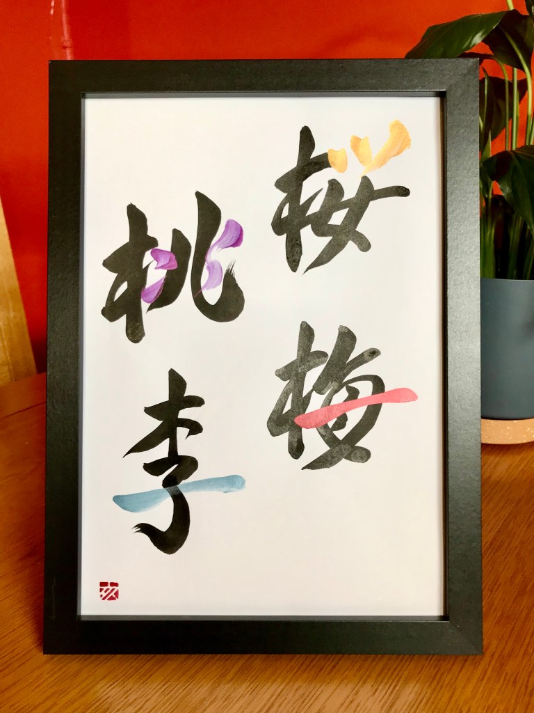 It is comprised of 4 beloved Japanese trees which blossom in spring. They are: