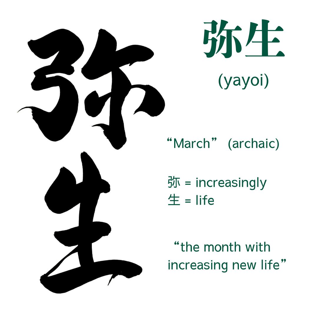 In other words, “the month with increasing new life”. This befits the time of year when it is spring in the Northern hemisphere, and Japan enjoys beautiful spring blossoms such as cherry blossom and plum blossom.