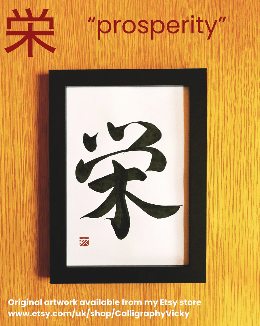 栄 “prosperity” Posted byVickyMay 4, 2025Posted inUncategorizedTags:Calligraphy, Japan, Japanese calligraphy, Japanese language, 書道, 書道アート This original artwork is available from my Etsy site Share this: Click to share on X (Opens in new window) X Click to share on Facebook (Opens in new window) Facebook Like Loading... Related