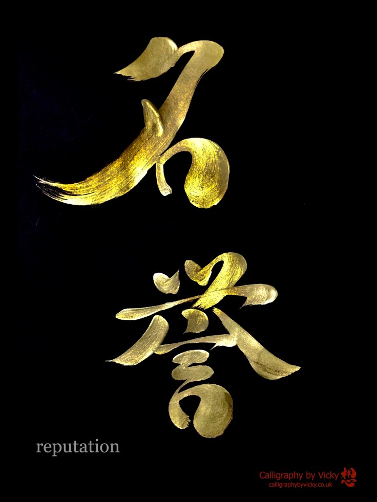 Each image was hand-created using a traditional Japanese calligraphy brush and metallic paint on black paper.